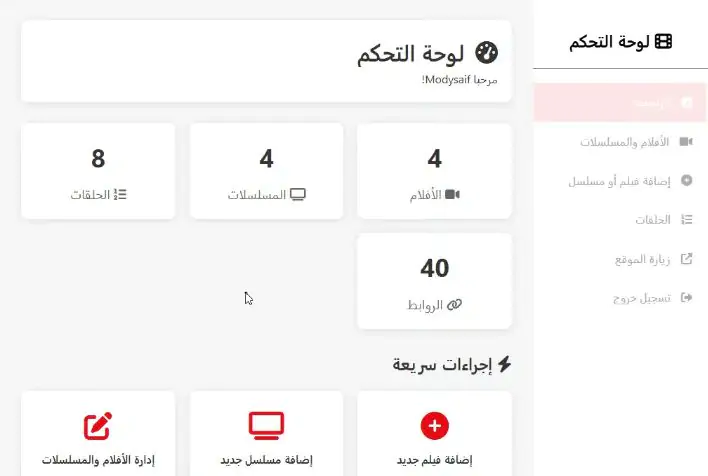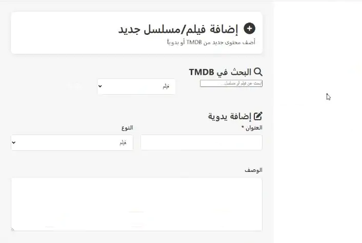 البدء في إضافة الأفلام والمسلسلات من لوحة التحكم